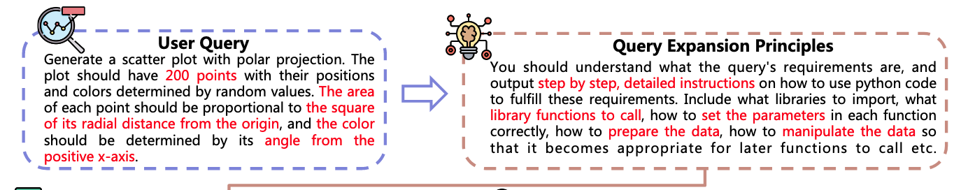 - user의 추상적인 요구사항을 구체화하는 단계로, LLM이 태스크를 처리하기 쉽도록(library specify, importing ..) explicit instruction들을 생성한다.