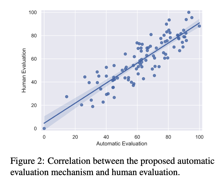 LLM-as-a-judge 방법론의 정당성을 평가하기 위해, 실제 human evaluation도 병렬로 진행해 점수 간의 상관분석을 진행한다. $p<0.05$를 도출하며 model-generated figure를 평가하는 scoring mechanism의 신뢰 가능성을 나타낸다.