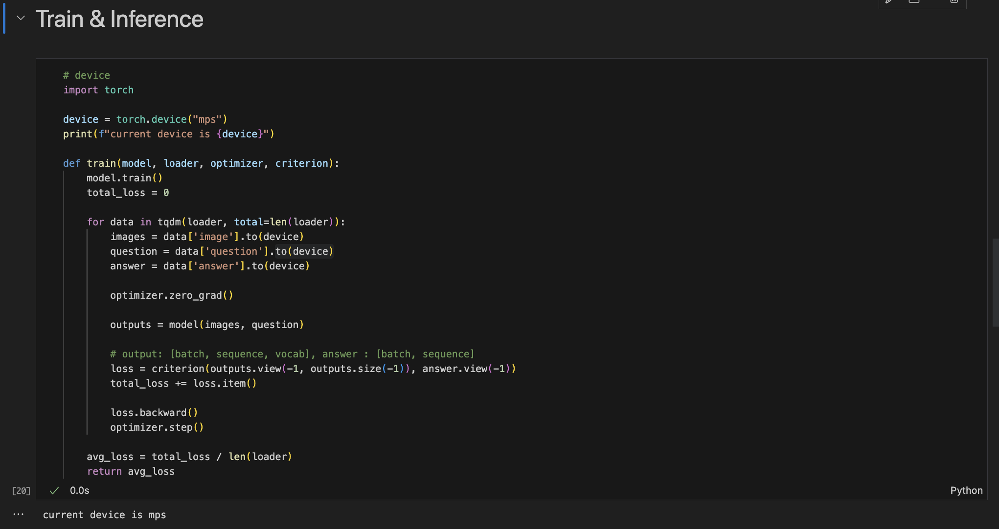 쉘에서 이전에 device를 mps로 적용한 후, 이후의 데이터를 불러올 때에도 해당 device로 옮겨주는 작업이 필요하다.