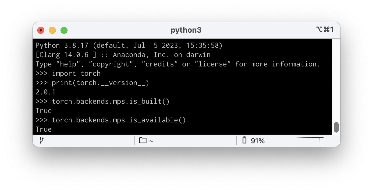 각각 True를 출력하면 현재 mps 백엔드를 사용할 수 있는 상태인 것이다.